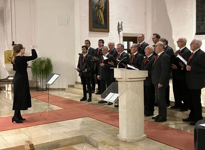 „Fröhliche Weihnacht“, „Süßer die Glocken nie klingen“ und „One Light“ wurden vom Männerchor einfühlsam vorgetragen. Barbara Mühlbauer dirigierte.